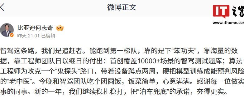 IT之家 2月9日消息,比亚迪股份有限公司执行副总