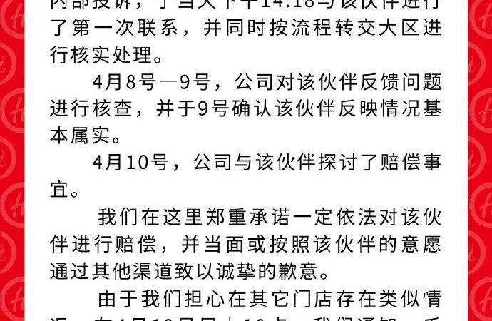 海底捞回应“员工因顾客投诉被强制自费买礼物”:情况属实,一定依法对该伙伴进行赔偿,已通知一千多家门店进行内部排查