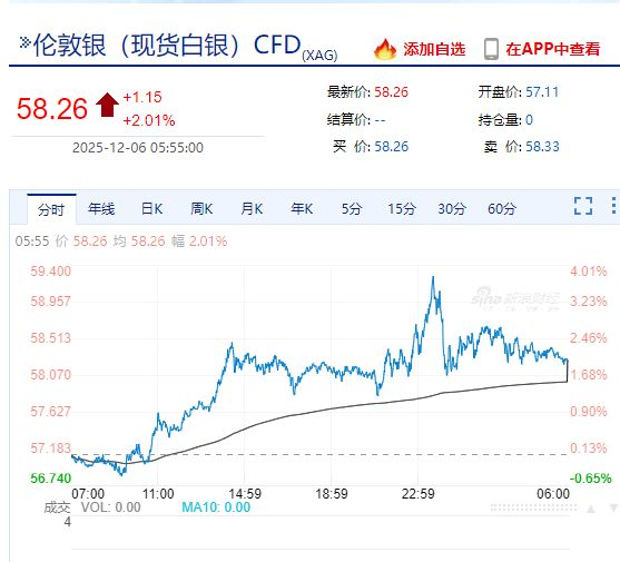 本周强势的白银在刷新历史新高59.31美元后,涨幅回落至2%。