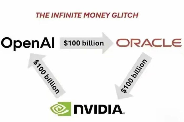 今年年初,OpenAI同意付3000亿美元给甲骨文获取新算力,而甲骨文又要付几百亿美元给英伟达购买GPU算力卡用来给OpenAI大模型用;而英伟达又同意向OpenAI投资1000亿美元,让它购买自己的算力卡。