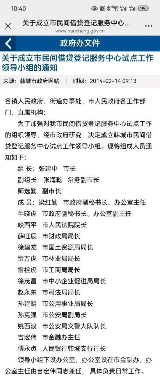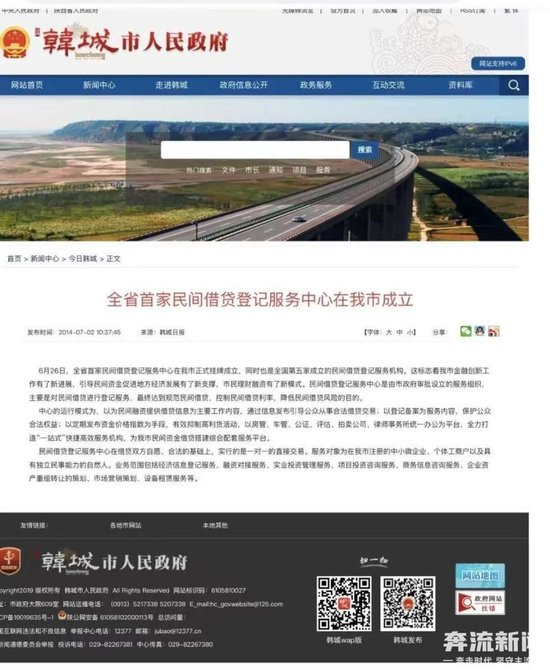 公开资料显示,韩城市民间借贷登记服务中心成立于2014年6月,是经韩城市政府批准设立的陕西省首家民间借贷服务机构。该中心从设立之初就带有明确的政策使命,被定位为“规范民间融资、支持中小微企业”的金融创新平台。韩城日报曾多次对其进行专题报道,刊发的《创新融资:民间借贷撬动大产业》一文中,称赞其“为闲散资金找到了方便、高效、安全的投资渠道”。在官方宣传中,该平台被塑造为政府主导的合规金融试点,多位出借人也曾公开表示对其“政府背景”下的运营充满信心。